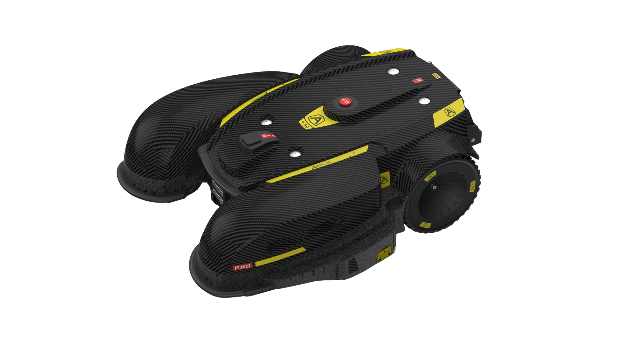 Den nye kraftfulde Ambrogio 4.50 elite robotplæneklipper med RTK teknologi og ultralyd sensorer arbejder uden kanttråd og er velegnet til store åbne områder med jævn terræn fra 30.000 op til 80.000*m2. Med de 4 kraftfulde 15 ah batterier og en klippediameter på 84 cm arbejder robotten effektivt op til 11 timer på en opladning og klipper systematisk i lige baner. Den har et eksklusivt kulfiber skjold, elektrisk klingehøjdejustering, touchskærm samt gummi baghjul for bedre greb på underlaget. Med 4G/GPS Connect kan robotten styres/overvåges på afstand når som helst og hvor som helst via Ambrogio Remote APP eller den kan tilgås på touchskærmen.
